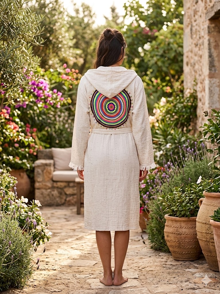 Çok Yönlü Stil: Duş sonrası lüks bir bornoz, sabahları şık bir sabahlık ya da tatil günlerinde plajda eşsiz bir tamamlayıcı.