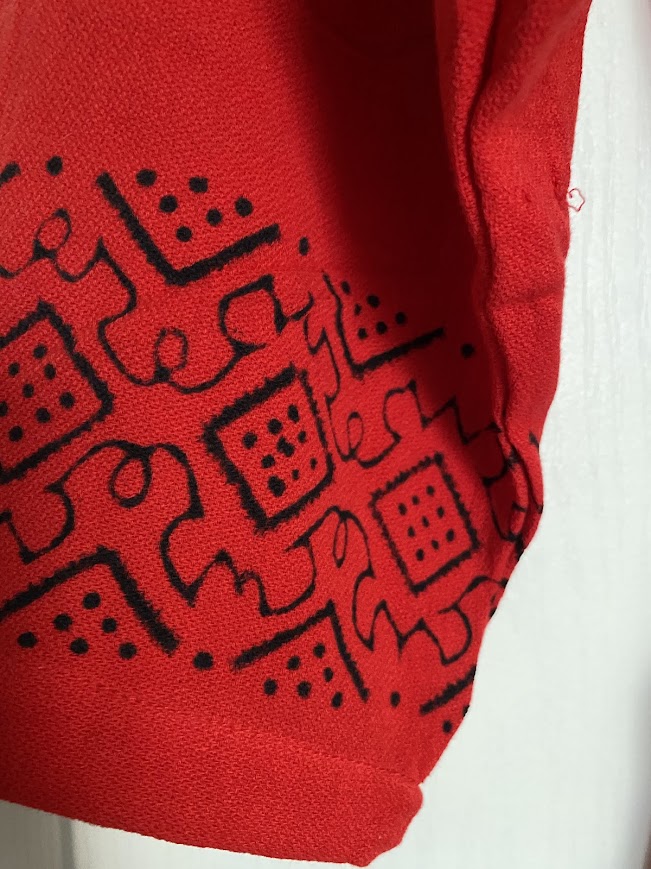%100 pamuk keten Sorella Atelier dokunuşuyla hayat bulan bu göz alıcı tasarım, geleneksel motifleri modern bir silüetle buluşturuyor. Kırmızının en canlı tonu üzerine işlenen siyah etnik desenler, hem ön hem de arka yüzeydeki detaylarıyla her açıdan kusursuz bir şıklık sunuyor.