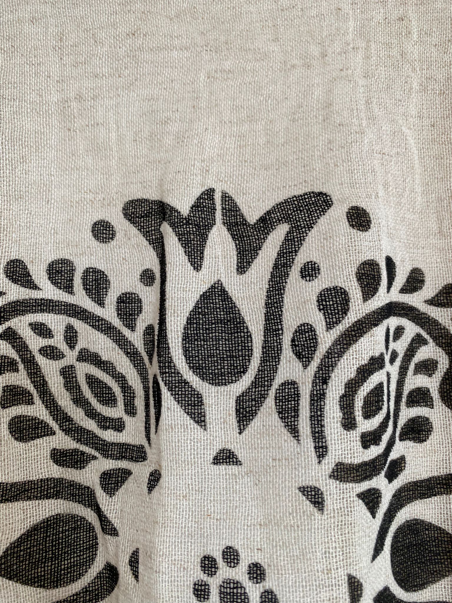 Kenevir Kumaş El Boyama Mandala Krem Kimono