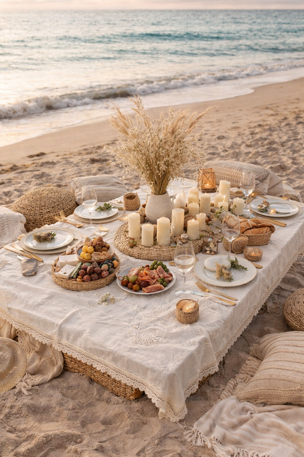 Hasır Amerikan servisler, cam objeler ve kuru çiçeklerle kombinlendiğinde ürünün boho ruhu daha da ön plana çıkar. Özellikle gün batımı sofralarında ve yaz akşamlarında büyüleyici bir atmosfer oluşturur.