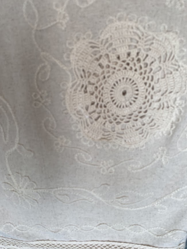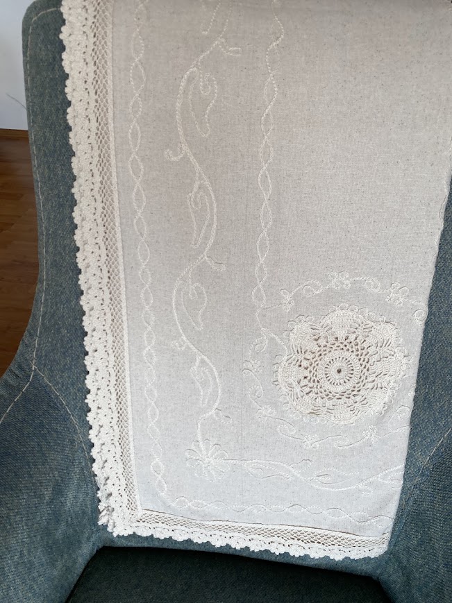 El işçiliğini andıran dantel detayları ve yumuşak krem tonu ile bu masa örtüsü, hem günlük kullanımda hem de özel sofralarda zamansız bir şıklık sunar. İster bahçede, ister evde, ister kumsalda kurduğunuz sofralarda doğal ve sıcak bir atmosfer yaratır.